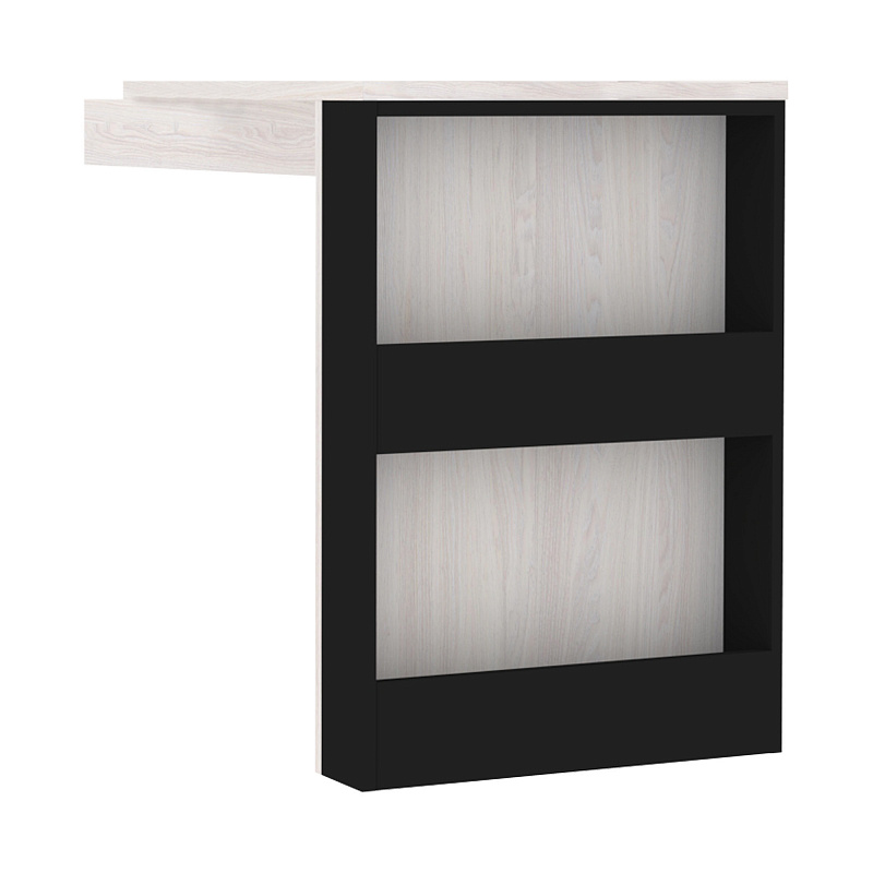 Увеличить площадь рабочего места для размещения книг, рабочих тетрадей и техники можно используя дополнительную консоль к модулю Стол письменный Натура 84 С внешней стороны приставного стола имеется дополнительная ниша для хранения. Угловой стол можно установить с любой стороны письменного стола, образуя тот угол, который подразумевает планировка комнаты.