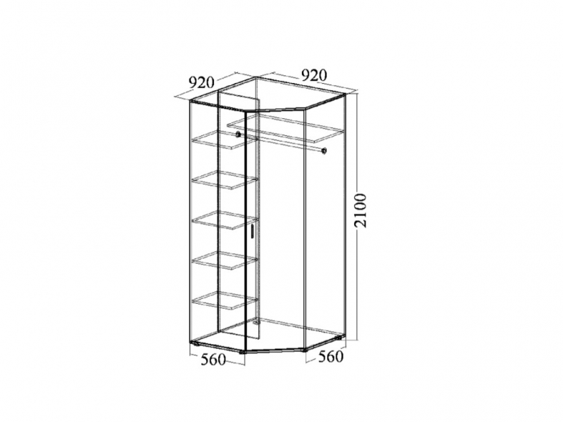 Размер (ДхВхШ): 920х2100х920/560 мм