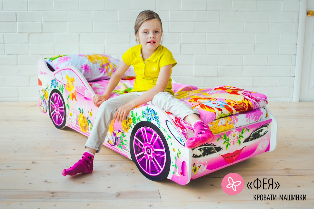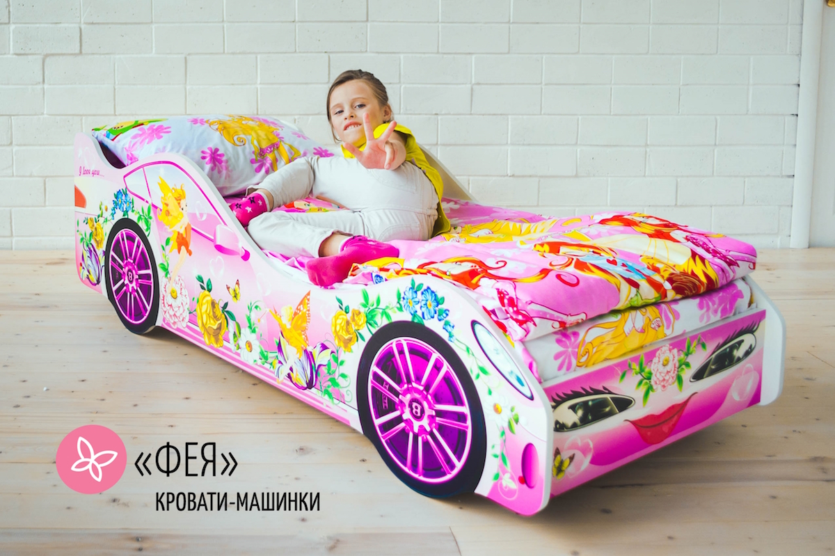 Оригинальная кровать-машинка Фея предназначена для девочек от 2 лет. Яркий сказочный рисунок, вне всякого сомнения, понравится маленьким принцессам. В такой кроватке будет уютно перед сном послушать волшебные истории или даже сочинить свои.