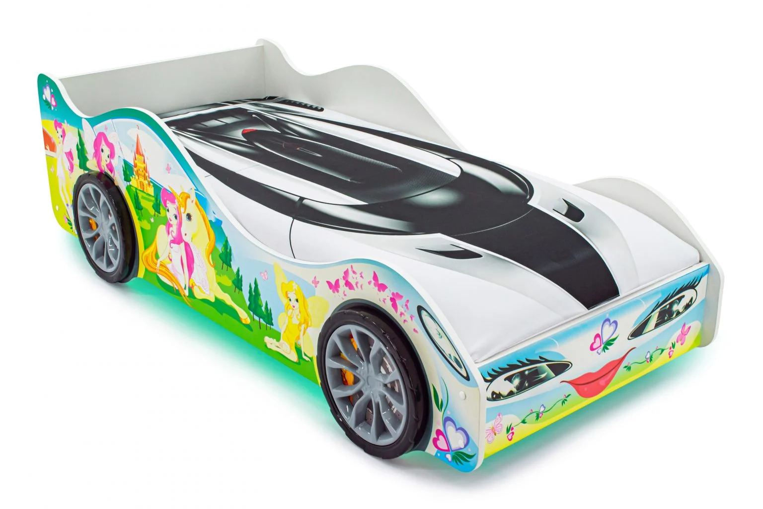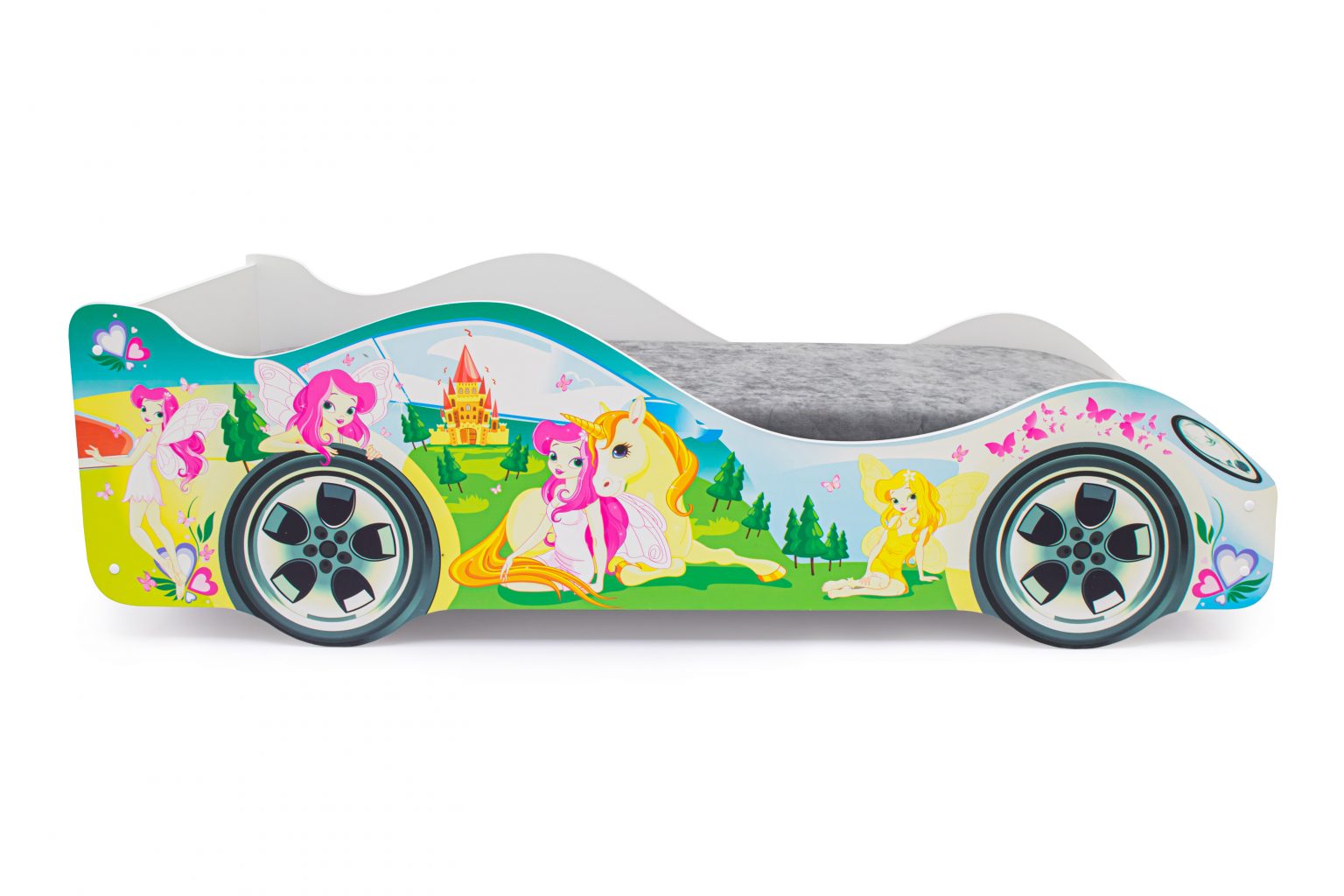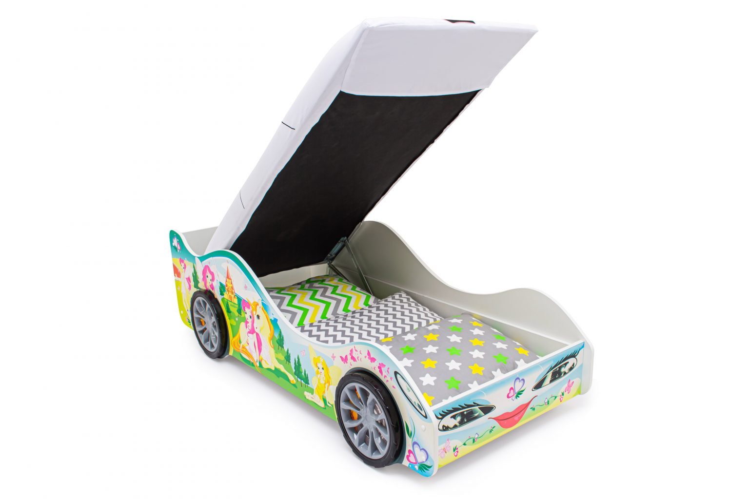 Детская кровать-машина “Принцесса” с подъемным механизмом станет любимым местом для сна и игр мальчика или девочки от 2 до 10-12 лет.