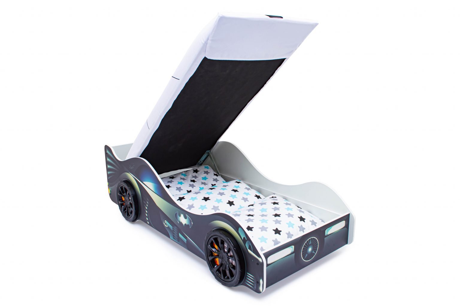 Детская кровать-машина “Бэтмобиль” с подъемным механизмом станет любимым местом для сна и игр мальчика или девочки от 2 до 10-12 лет.