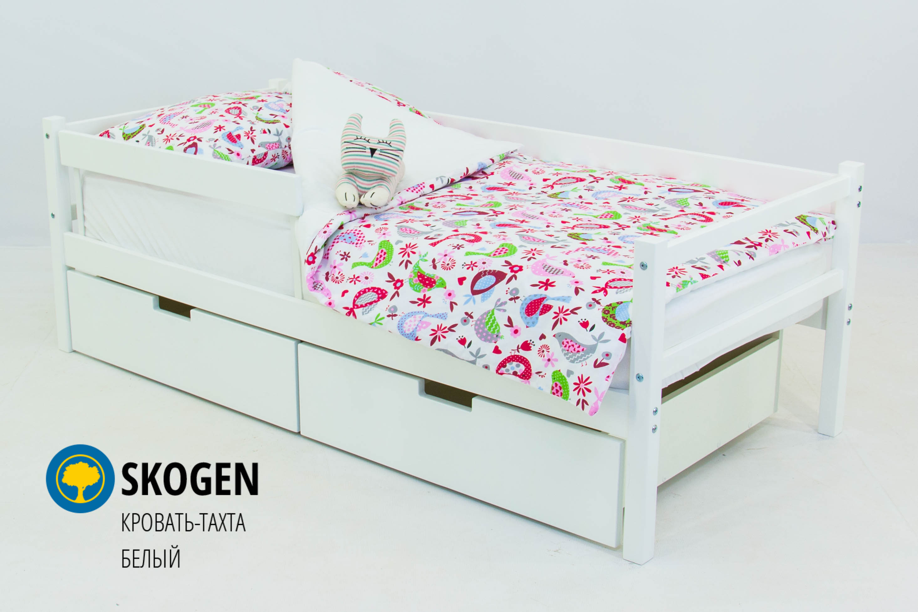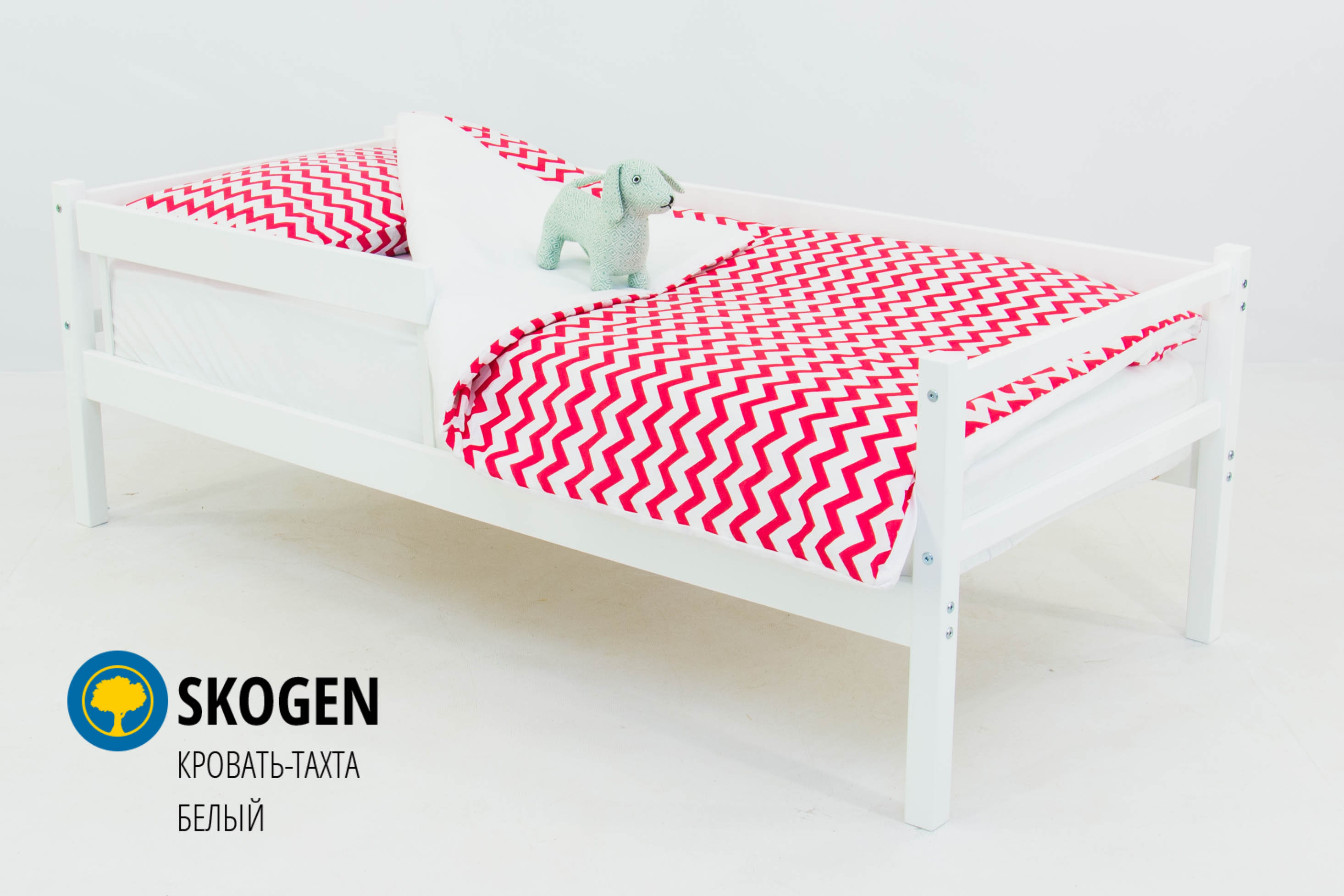Детская кровать-тахта «Skogen» изготовлена из сосны. Мебель из сосны долговечна и надежна, прослужит вашему ребёнку на протяжении всего этапа взросления, так как основание кровати выдерживает нагрузку до 200 кг, а спальное место имеет размеры 160*70, на такой кровати комфортно себя чувствует ребенок вплоть до 11-12 лет.