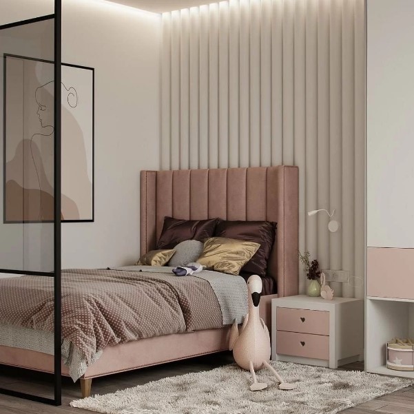 При изготовлении кровати использованы качественные материалы. Мягкость боковин и высокой спинки обеспечивает безопасный для здоровья наполнитель – ППУ и синтепон.