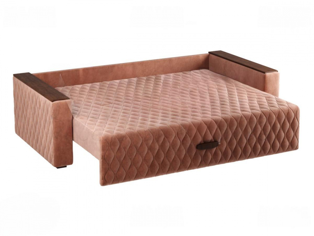 Диван отлично впишется в любой стиль интерьера. Боковины украшены деревянным декором.