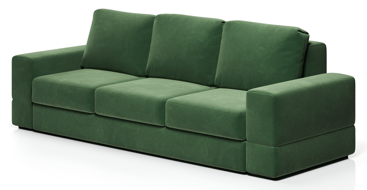 Диван имеет систему трансформации «тик-так». Так же диван укомплектован тремя большими подушками в единой ткани с диваном. Состоит из дивана со спальным элементом и оттоманки. Имеет 2 вместительных короба для хранения