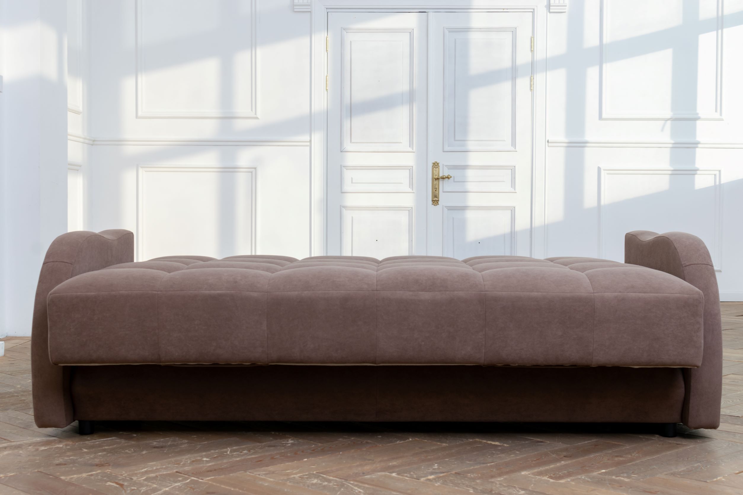 Выпуклые формы спинки и посадочного места создают необыкновенную мягкость модели. В наполнении - холлофайбер. Он был создан на основе структуры синтепона, но заметно отличается от предшественника. У синтепона волокна прямые, у холлофайбера — витые. Отсюда и главное достоинство материала — способность легко изменять и восстанавливать форму. На диване комфортно не только сидеть, но и спать. Выпуклые формы под тяжестью тела с легкостью превращаются в абсолютно ровное спальное место.