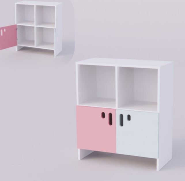 Оригинальный стеллаж для хранения методических материалов, игрушек и развивающего оборудования. Включает 4-секций, 2-секции дополнены дверцами. Глубина полок позволяет хранить объемные предметы.
