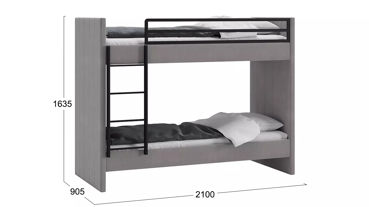 Магазин мебели «100Диванов» предлагает купить Кровать двухъярусная Дарси с мягкой обивкой Велюр серый в Муравленко по выгодным ценам от производителя с доставкой.