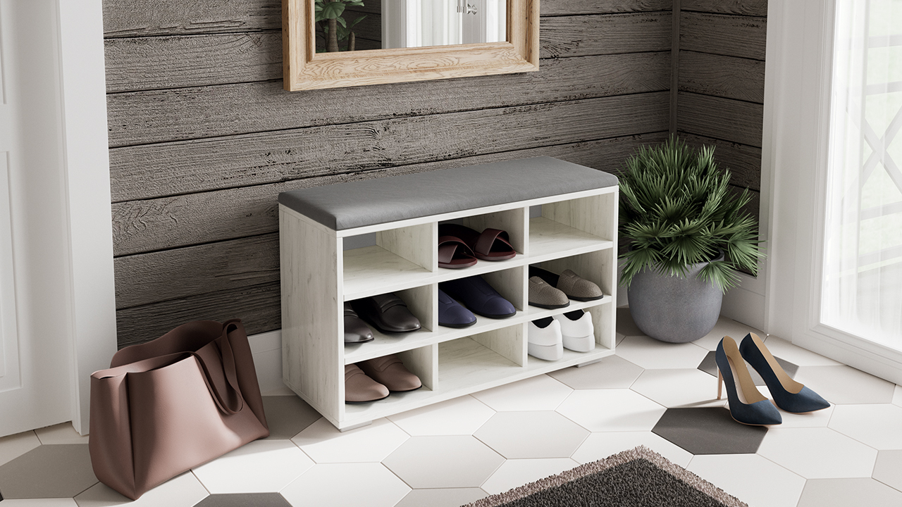Модель оснащена открытыми полками для обуви, что позволяет быстро найти нужную пару, не тратя лишнего времени. Для удобства эксплуатации тумба оборудована мягким сиденьем, тем самым не только добавит уюта, но и сделает процесс переобувания более комфортным.