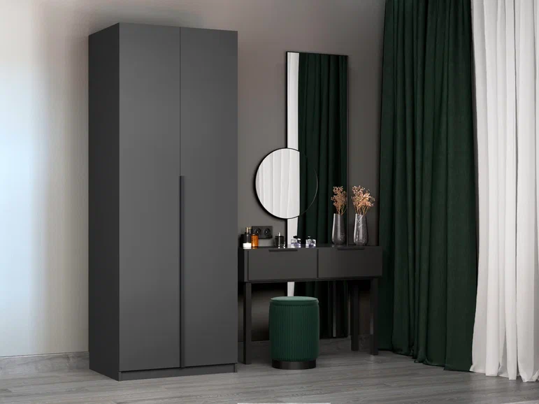 Шкаф оснащен удобной минималистичной ручкой, изготовленной из алюминия.