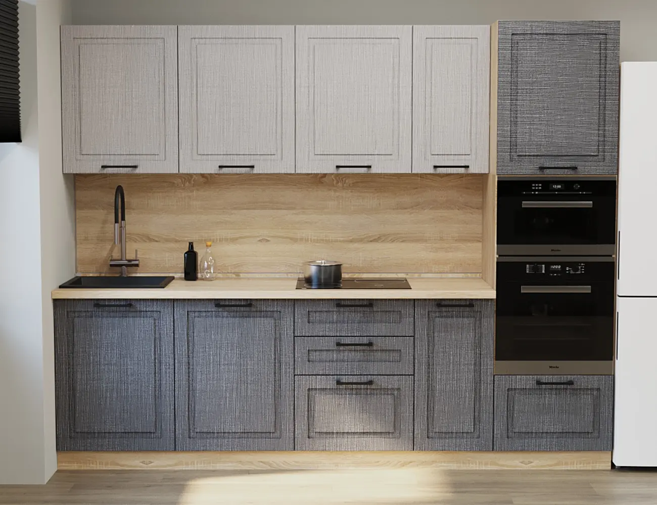 Аликанте 32: Цвет фасада: Чесура светлая, Чесура темная, корпус Дуб сонома, столешница 28мм Дуб сонома