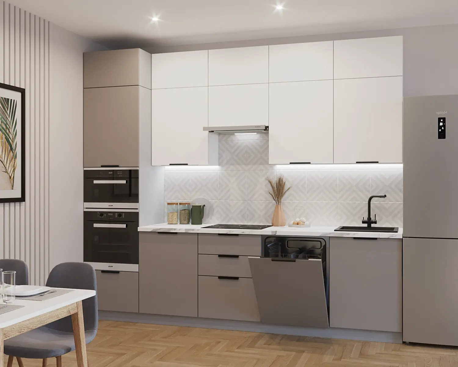 Магазин мебели «100Диванов» предлагает купить Кухонный гарнитур арт. 5 Обсидиан Тальк 3000 мм в Муравленко по выгодным ценам от производителя с доставкой.