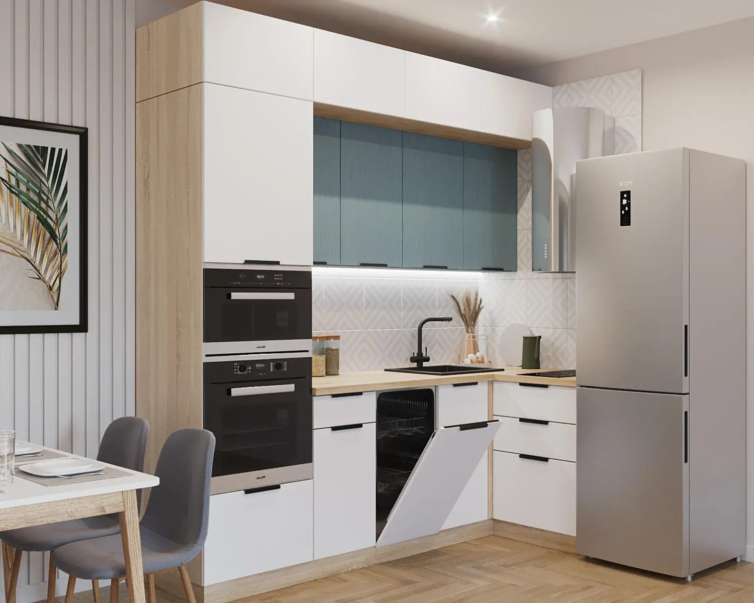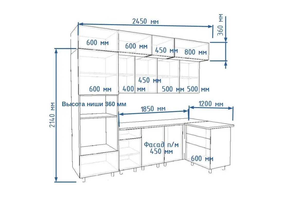 Магазин мебели «100Диванов» предлагает купить Кухонный гарнитур арт. 6 Тальк РоялВуд Голубой 2450х1200 мм в Муравленко по выгодным ценам от производителя с доставкой.