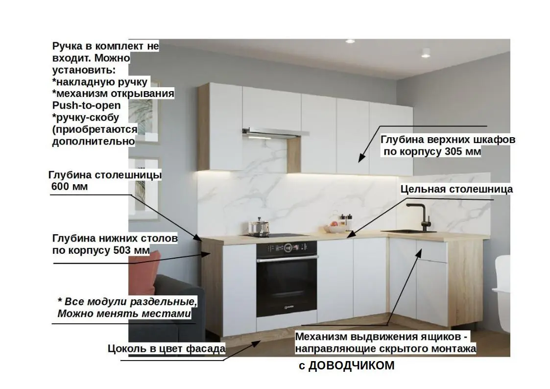 *Дополнительную информацию о том, как купить Кухонный гарнитур Тальк-2 (2300х1400 мм) уточняйте у нашего менеджера по телефону 8 (800) 500-54-49.