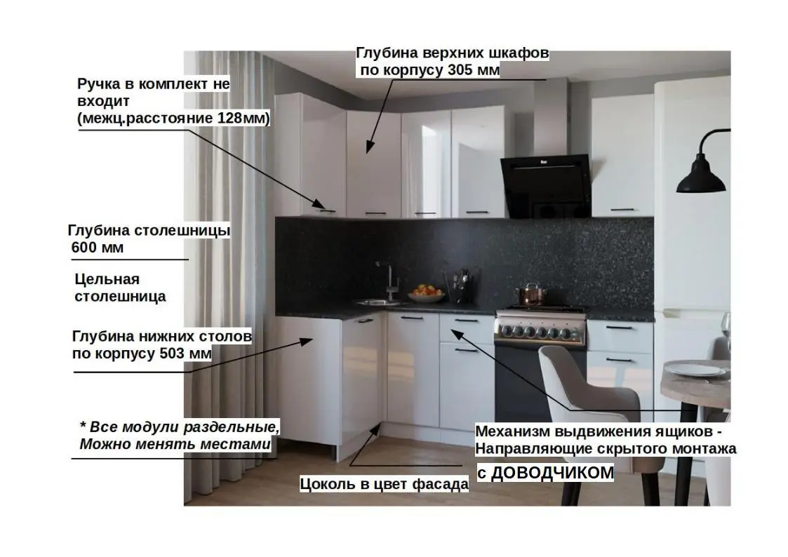 *Дополнительную информацию о том, как купить Кухонный гарнитур Белый глянец-15 (1200х1800 мм) уточняйте у нашего менеджера по телефону 8 (800) 500-54-49.