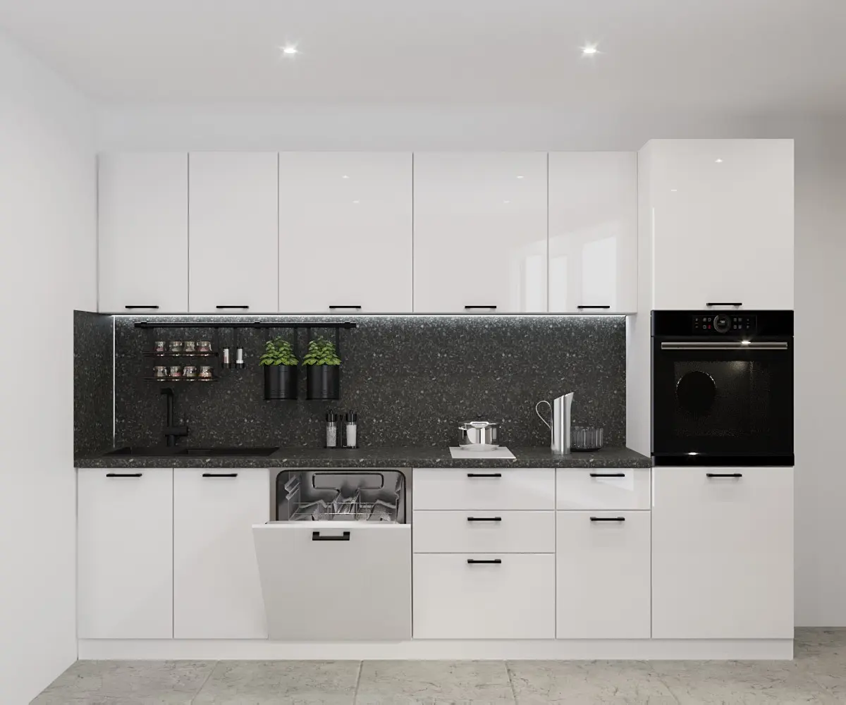 Белая глянцевая кухня неизменно пребывает на пике популярности. Она является настоящим олицетворением легкости, свежести и гармонии. В таком помещении даже воздух покажется более чистым, а солнечный свет наполнит ярким сиянием каждый ее уголок