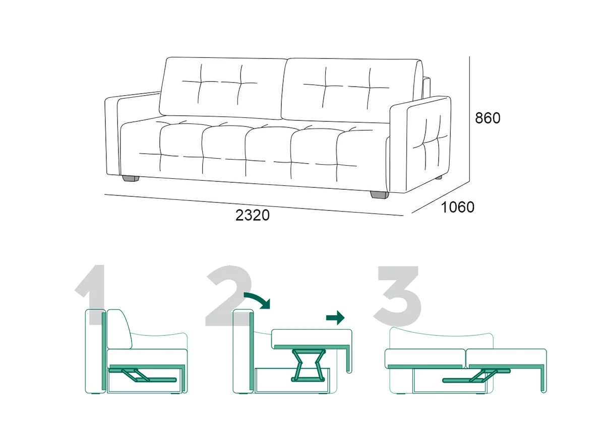 Габаритные размеры: 2320х1060х860 (мм).