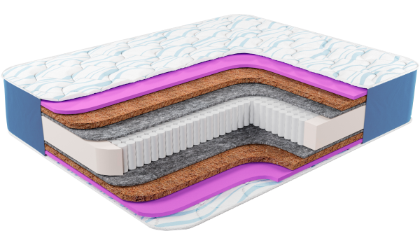 Стороны матраса состоят из толстого слоя койры кокоса и пеной высокой плотности. Койра формирует ровное упруго-твердое спальное место, полезное для предупреждения заболеваний опорно-двигательного аппарата. Пена высокой плотности обладает прекрасной упругостью, при этом материал весьма пластичен. Он смягчает жесткость кокосовых волокон, точно подстраиваясь под контуры тела, обеспечивает комфортный отдых.