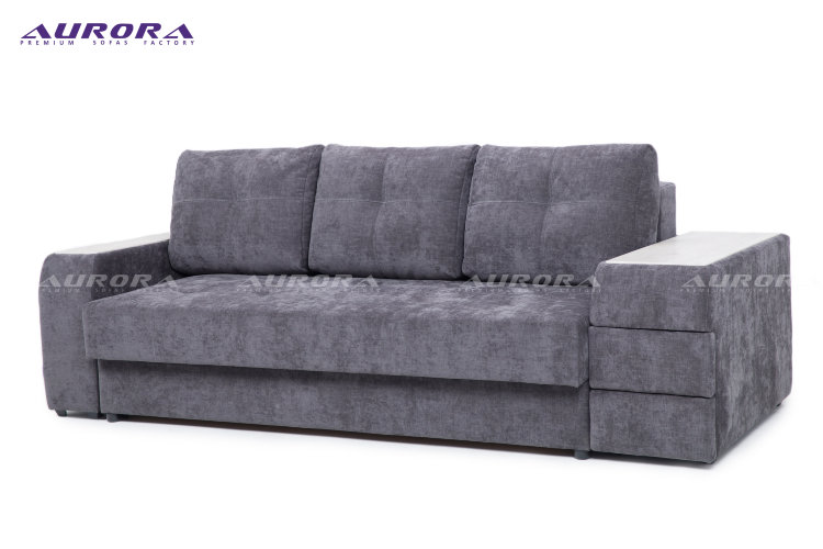 Вы легко сможете разложить диван с помощью механизма «тик-так» со стальными направляющими AURORA STEEL. А с ортопедическим наполнением AURORA FORM ваш сон на диване будет здоровым и крепким. Ниши для хранения расположены под посадочным местом и в подлокотниках.