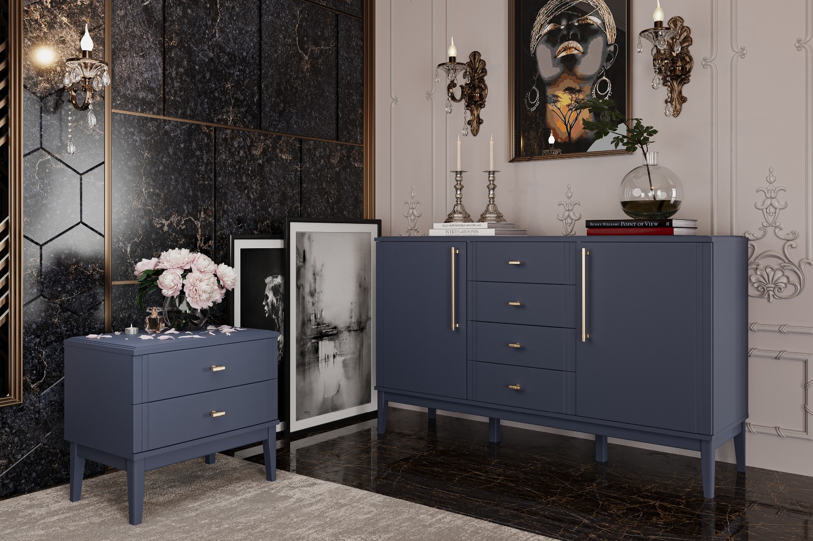 4. Комод 4 ящика, 2 двери Джали