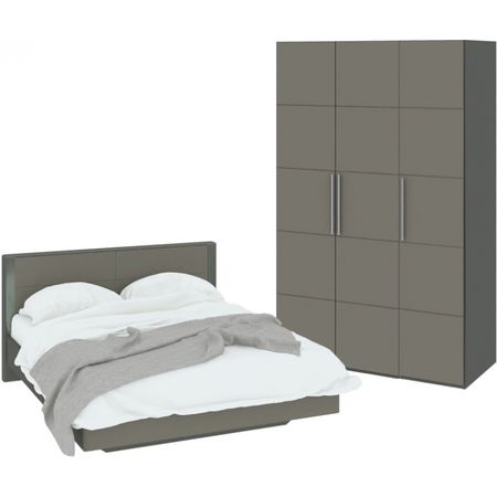 Модульный спальный гарнитур НАОМИ гармонично сочетает в себе оригинальность, респектабельность и красоту современного стиля, максимальное удобство и функциональность. Глянцевый каркас выглядит эффектно на фоне темной текстуры «Джут», имитирующей фактуру ткани, придающий эффект мягкости и приятных тактильных ощущений.